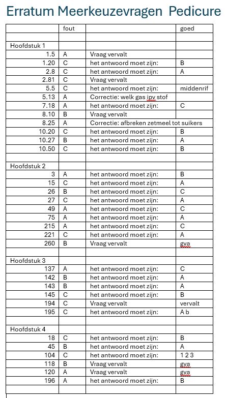 Erratum Meerkeuzevragen Pedicure